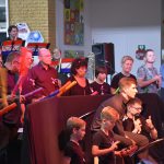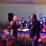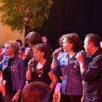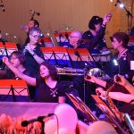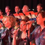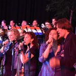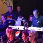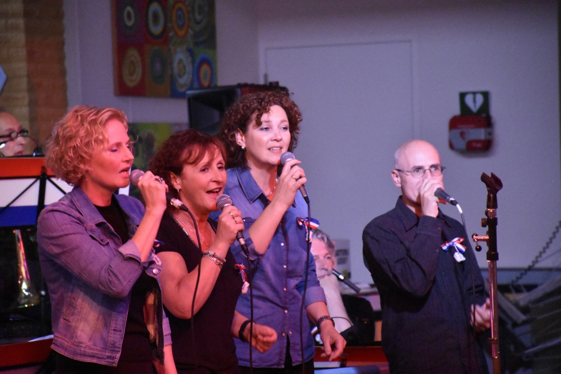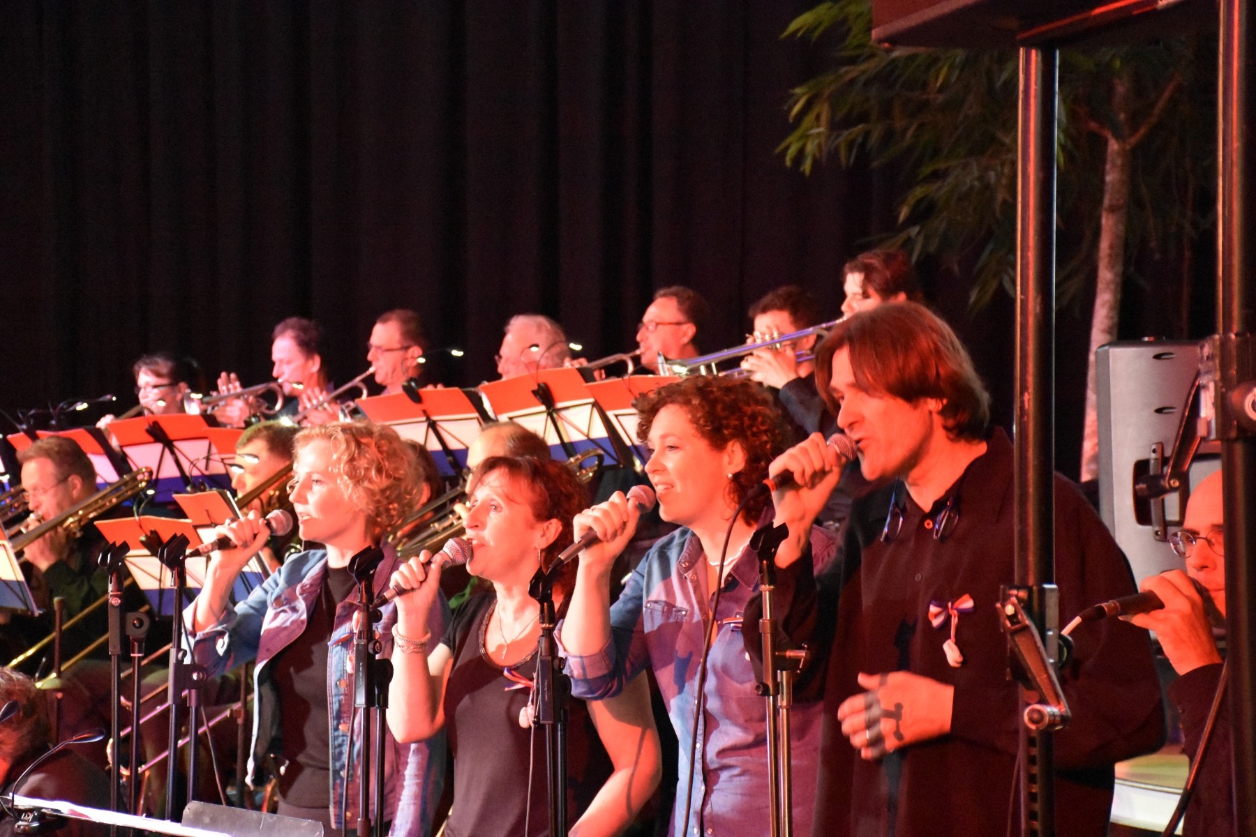 Naast enkele instrumentale nummers, zorgden ook de zangers Edward van der Ven en Peter Hellings voor de juiste sfeer met hun vertolkingen van onder andere Doe Maar en André Hazes. Het koor Mooche verraste iedereen met hun loepzuivere en ritmische strakke a capella vertolkingen van Anouk en Laura Jansen. Ook de verrassende en komische slagwerk acts vielen erg in de smaak. Dank aan de zangers, het koor Mooche, het combo en natuurlijk onze Drumfanfare voor dit swingende en gezellige concert.
